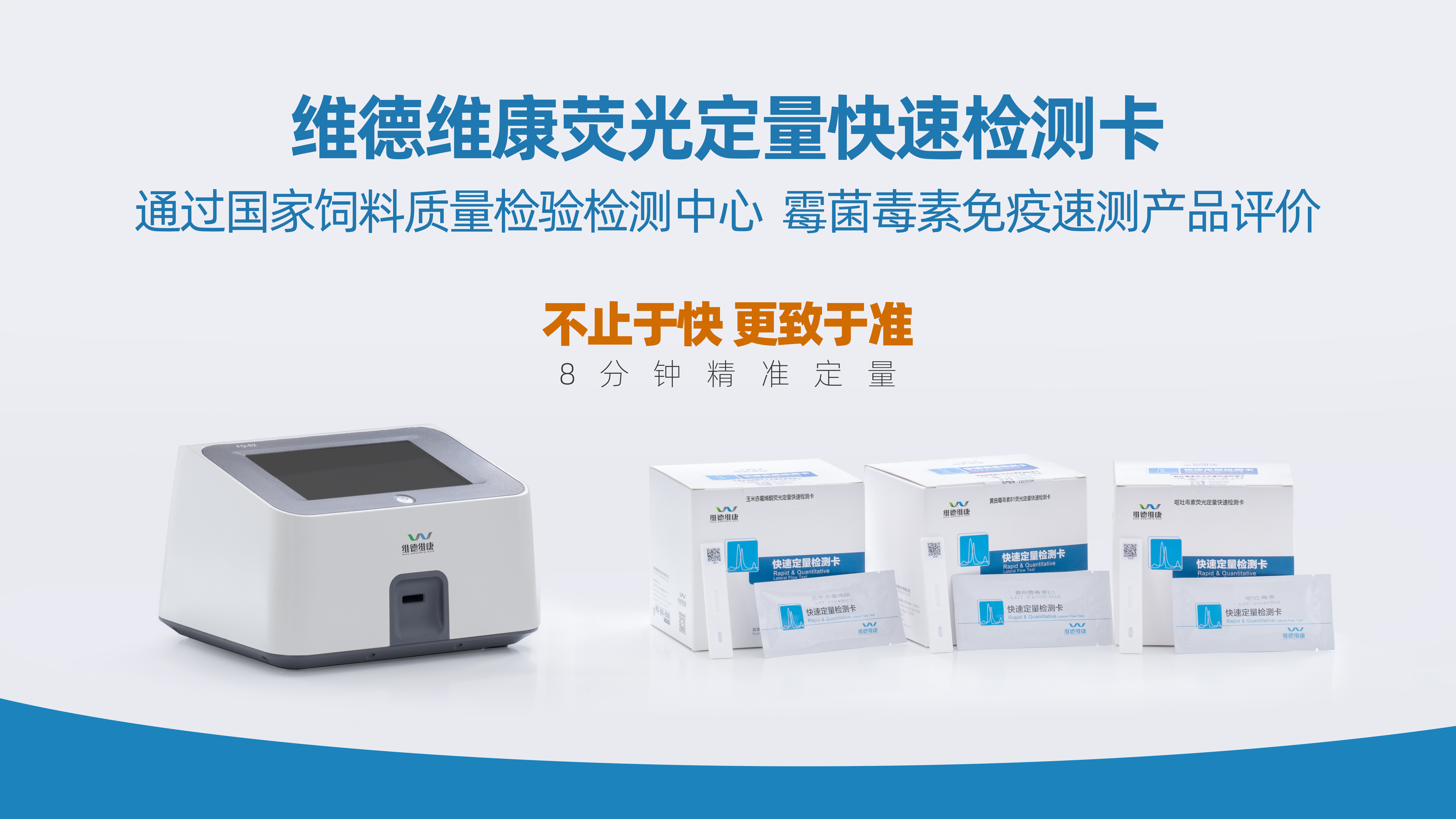 國(guó)家飼料質(zhì)量檢驗(yàn)檢測(cè)中心(北京)于2022年8月對(duì)維德維康的嘔吐毒素?zé)晒舛靠焖贆z測(cè)卡、黃曲霉毒素B1熒光定量快速檢測(cè)卡及玉米赤霉烯酮熒光定量快速檢測(cè)卡進(jìn)行了評(píng)價(jià)實(shí)驗(yàn),主要評(píng)價(jià)指標(biāo)包括:適用性、準(zhǔn)確度和實(shí)際樣品檢測(cè)能力3個(gè)方面。維德維康三個(gè)霉菌毒素?zé)晒舛靠焖贆z測(cè)產(chǎn)品順利通過(guò)產(chǎn)品評(píng)價(jià)。適用性:三個(gè)項(xiàng)目測(cè)試不同樣本,陰性臨界值和陽(yáng)性臨界值均在所測(cè)量值的75-125%范圍內(nèi),產(chǎn)品適用性良好;準(zhǔn)確度:三個(gè)項(xiàng)目不同樣本檢測(cè)結(jié)果回收率均在90-100%之間,批內(nèi)批間變異均小于15%,產(chǎn)品準(zhǔn)確度高,檢測(cè)結(jié)果穩(wěn)定性強(qiáng);實(shí)際樣本檢測(cè)能力:三項(xiàng)陽(yáng)性樣本檢出率均為100%,陰性樣本正確率100%,實(shí)際樣本檢測(cè)能力良好。